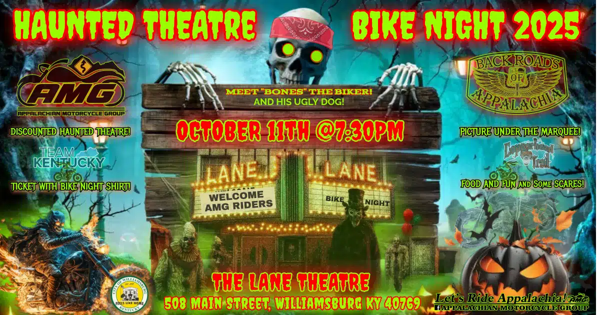 more: AMG/BOA 1st Annual HAUNTED THEATRE BIKE NIGHT at the HISTORIC LANE THEATRE in Williamsburg KY!