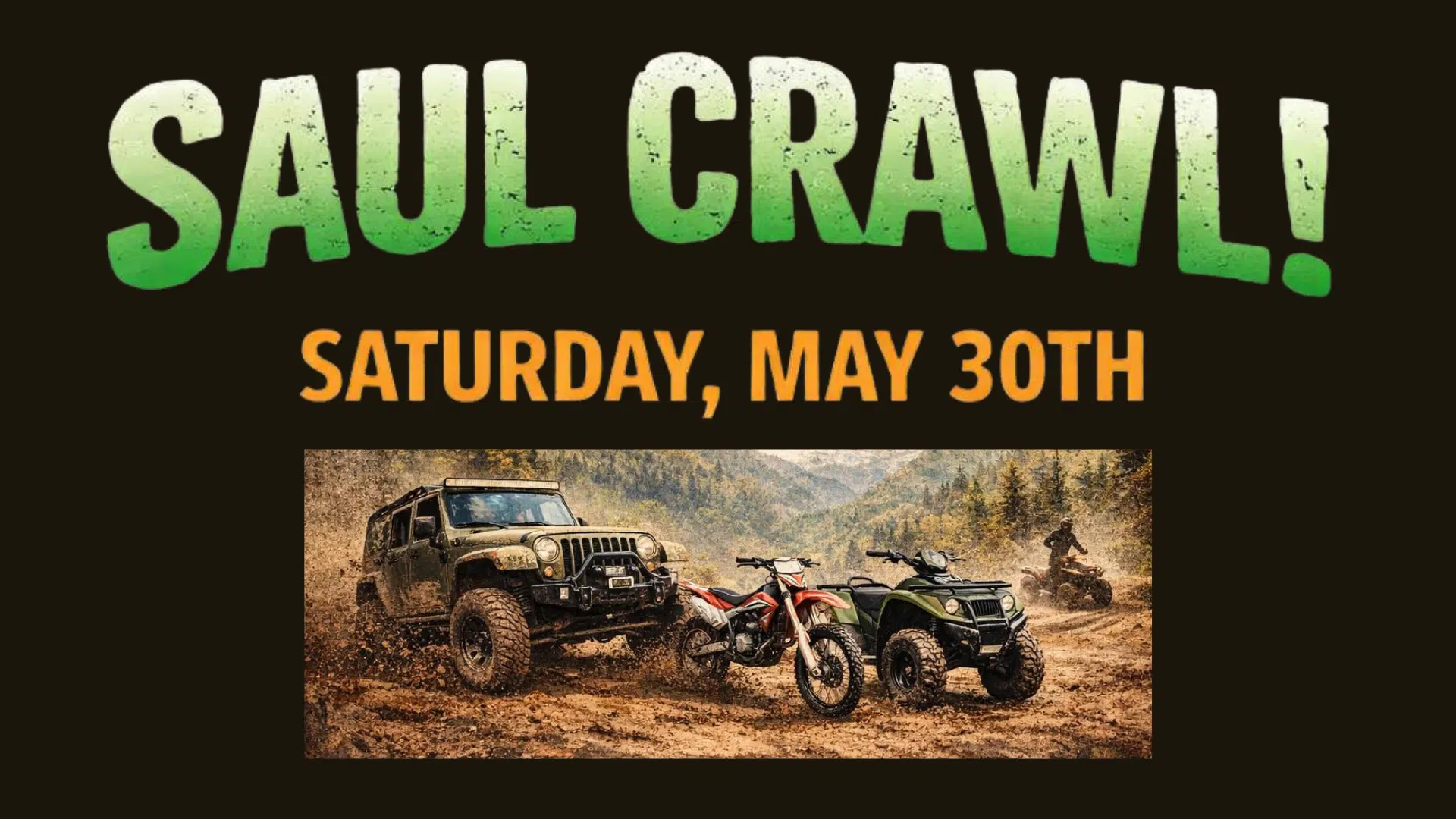 SAUL CRAWL! An off-road ride through the Mountains of Eastern Kentucky. Date: May 30thStart: Backroads of Appalachia HQ, Sturgeon Creek. End: Saul Community Center$10/Vehicle