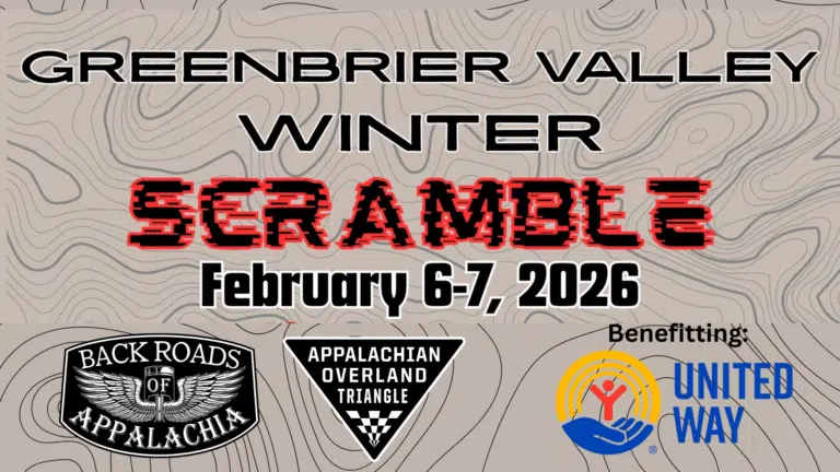 Greenbrier Valley Winter Scramble: A Fundraiser for the United Way of Greenbrier Valley April 24-25, 2026 Format: You have 12 hours to hit as many of 48 OnX Offroad waypoints as possible. Some waypoints are worth bonus points. Proof: Snap a selfie at designated points and post to socials: #gbrvalley as well as record your…